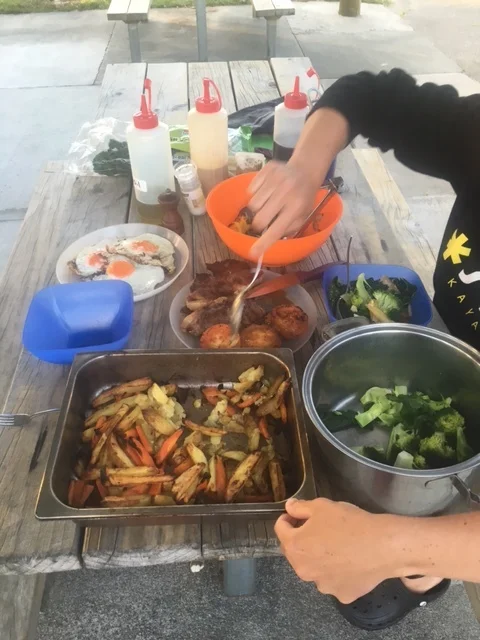 Food, water and lots of coffee needed as lack of food today on the water. Oops, yes I was bad today and am sure I will suffer for not eating enough. The team had a yummy coffee ready so I sat and ate brownie with honey, coconut oil and a large, hot, sweet coffee. A blissful shower to get warm and a full tummy...happy Red.
